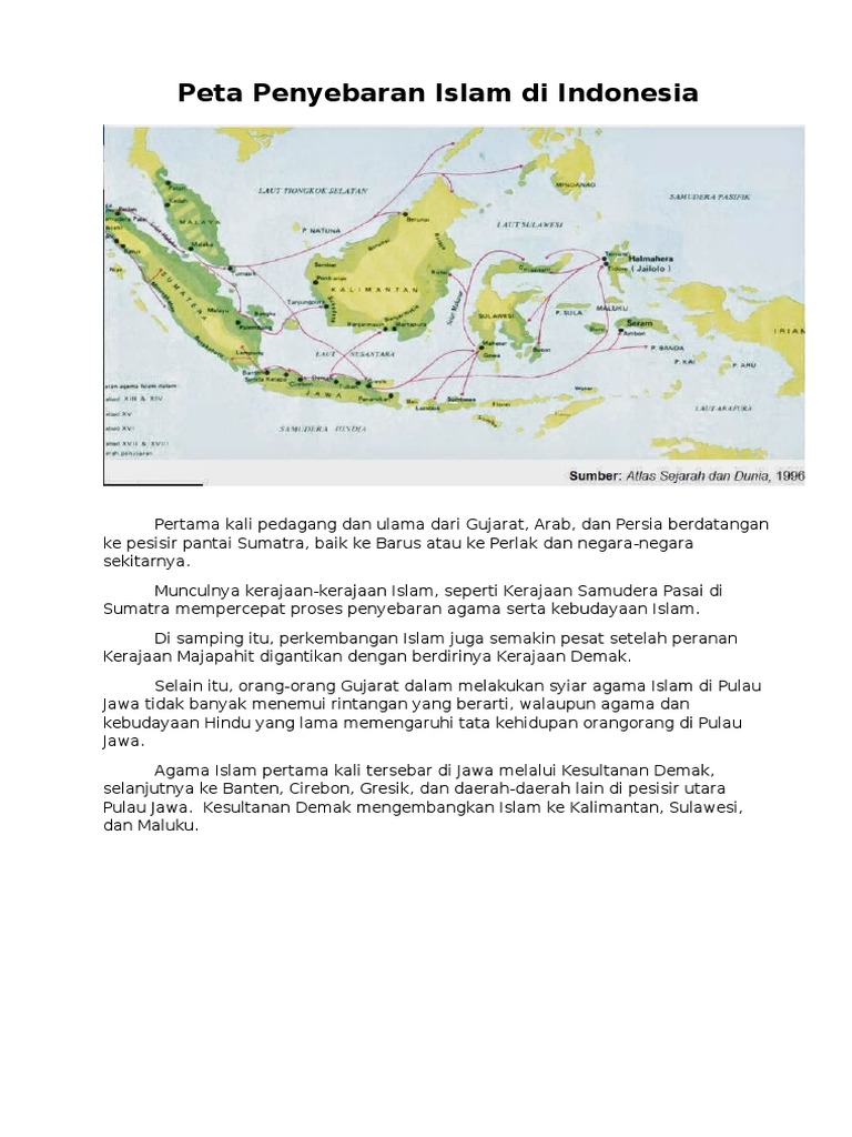 Sejarah penyebaran agama islam wayang kulit sebagai media penyebaran agama islam di demak pada abad. Dengan cara damai, masuknya islam disambut baik oleh penduduk. Dalam pengembangan islam di indonesia terdapat beberapa tokoh yang dikelompokkan dengan sebutan walisongo. Peta jalur penyebaran islam di indonesia proses penyebaran islam di indonesia berlangsung secara bertahap dan berkelanjutan dengan berbagai cara. Para ahli telah membagi peta pemikiran islam indonesia menjadi tiga tipe, yakni formalistik, substansialistik, dan moderat (bakhtiar efendi). Karena sebelum adanya 6 agama yang resmi dan diakui oleh indonesia, mayoritas masyarakat indonesia menganut kepercayaan dinamisme dan animisme sampai akhirnya agama hindu dan. Ajaran yang memuat nilai ketakwaan pada tuhan, kedamaian, dan kesetaraan antar manusia menarik minat masyarakat indonesia untuk menerima dan memeluk agama islam. Ensiklopedia kerajaan islam di indonesia. Masuknya agama kristen ke indonesia berawal dari bangsa portugis yang mendarat di aceh, kemudian ke wilayah timur. Dalam penyebaran islam di indonesia terdapat beberapa cara atau metode yang dipergunakan, antara lain yaitu: Salah satu wilayah yang memiliki demikian informasi tentang masuknya agama islam di indonesia yang mungkin belum anda ketahui. Kehadiran belanda di indonesia mengubah peta pengkristenan di beberapa daerah di indonesia. Peta penyebaran dan perkembangan islam di indonesia.